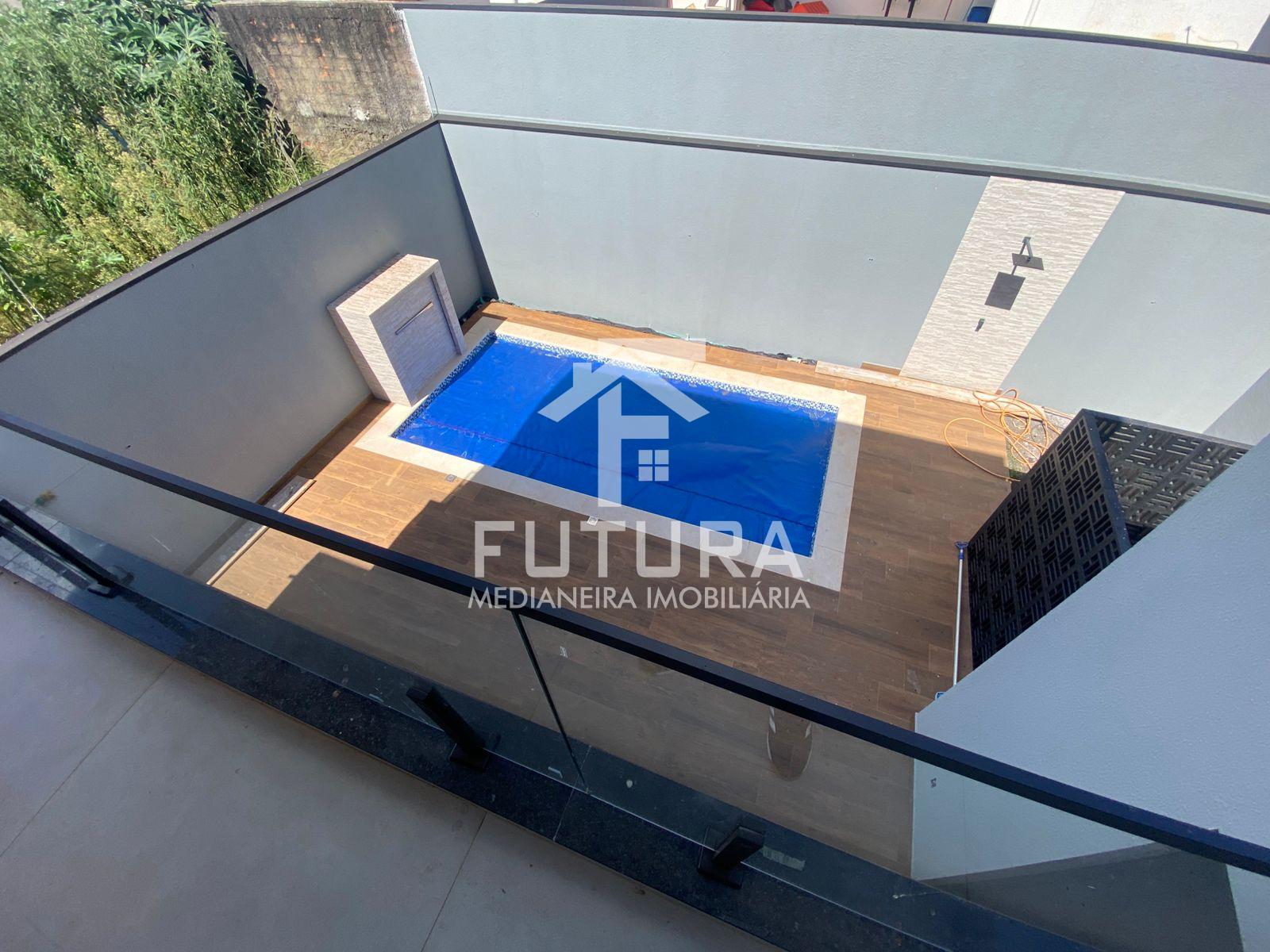 ÁREA 184m² 02 SUÍTES SALA ESTAR SALA JANTAR INTEGRADA COZINHA COM CHURRASQUEIRA LAVANDERIA LAVABO GARAGEM COBERTA PARA 2 CARROS + 2 DESCOBERTAS PISCINA AQUECIDA, SALINIZADA, COM BORDA PASTILHADA DUCHA EXTERNA. .